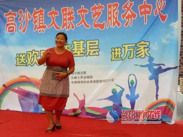 活动现场,由高沙镇文联云峰之声合唱团、中国旗袍协会全球联盟湖南洞口分会组织的文艺骨干共35人为乡亲们带来了精彩的节目:大合唱《我的祖国》《夕阳红》,欢快喜庆、传统扇舞巜恭喜发财》,本土歌曲《高沙美》,红歌独唱《红星照我去战斗》……丰富多彩的文艺演出,让这个平日沉寂的"山冲冲"成为一片欢乐的海洋。
