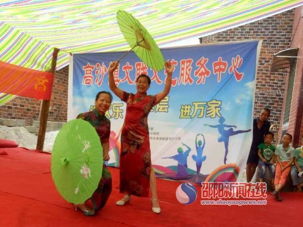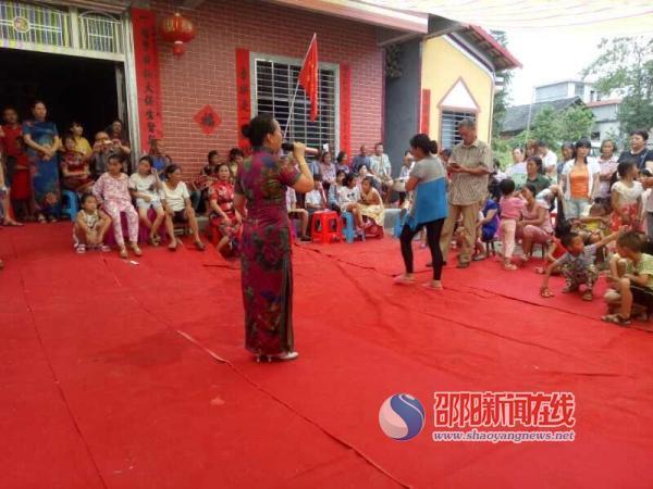 邵阳新闻在线讯(通讯员 刘大华 唐可省)6月30日下午,洞口县高沙镇洪茂管区与武冈市搭界的山姜家村,打破了往日的宁静,突然热闹非凡。该村刘保生家门前的晒谷场上人头攒动、欢声笑语,正在举行的“高沙镇文联文艺服务中心——送欢乐、下基层、进万家”活动吸引了附近方圆数里的乡亲。