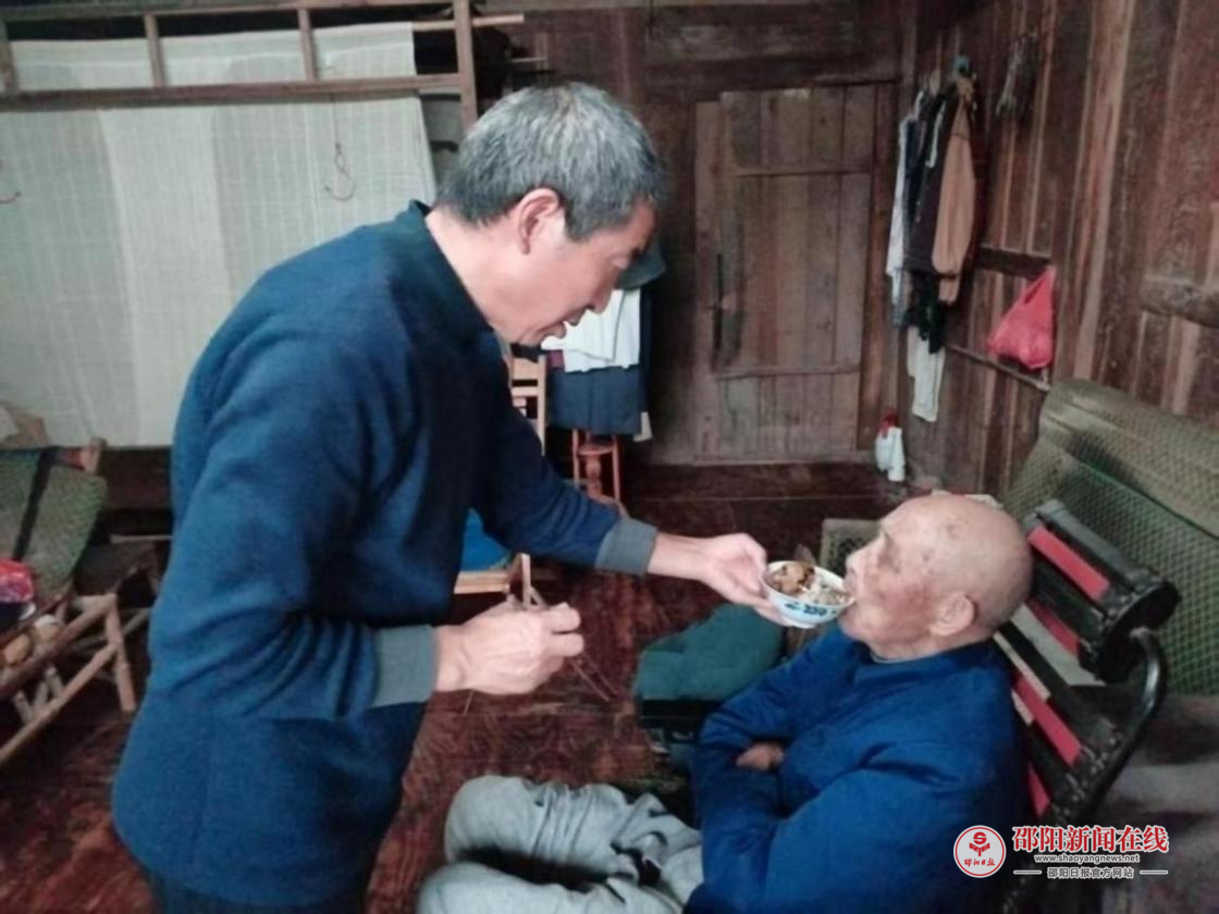 邵阳日报·邵阳新闻在线讯(通讯员 曾丽莉)近五年以来,洞口县花园镇红军桥社区居民曾德明持续照顾两位九旬高龄老人的故事早已传为佳话。94岁的曾梅芳患老年痴呆生活不能自理,90岁的刘银凤因带状疱疹后遗症亦需全程照料。曾德明每日为老人做饭喂饭、洗漱更衣,无微不至地陪伴守护,成为社区孝亲敬老的文化符号。