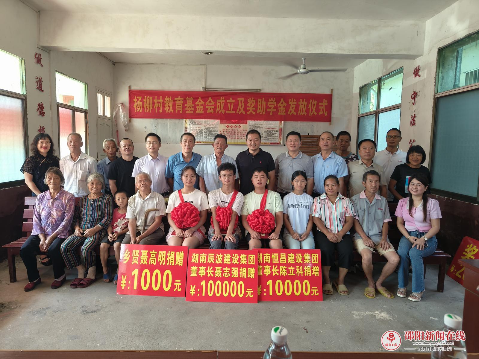 湖南辰波建设集团董事长聂志强捐助10万元带动成立杨柳村乡友会,所捐款项主要用于教育助学,并为今年在高考中取得优异成绩的3名本村大学生颁发了证书和奖学金共计6000元,同时对2名困难学生资助1000元助学金。聂志强在致辞中深情表示,自身的发展离不开家乡的养育与支持,设立教育基金是希望通过实际行动回馈乡土,承担社会责任,为家乡教育事业尽一份心力。他勉励获奖学子要志存高远、刻苦学习、懂得感恩,将来学有所成,无论身在何方,都能心系家乡,成为对国家、对社会有用的栋梁之材。