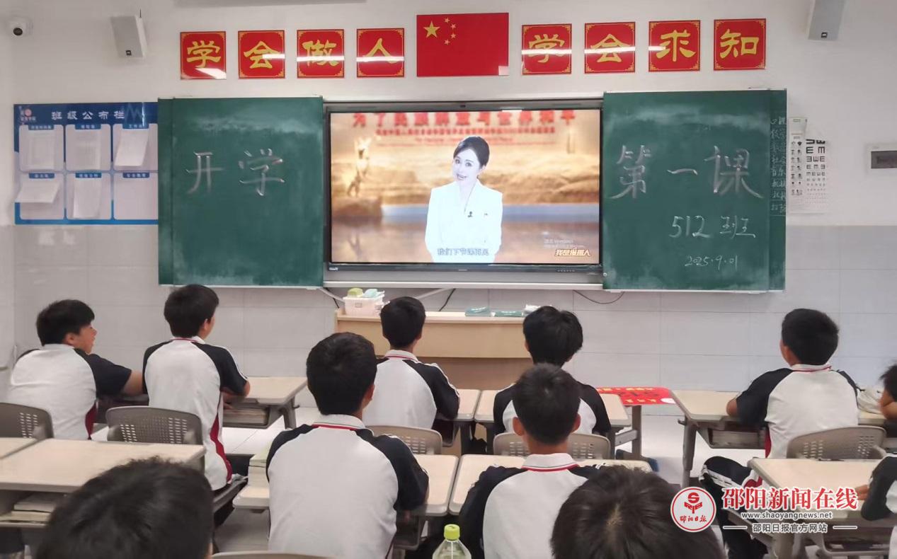 升旗仪式后,全体师生有序回到各班级,收看“我是接班人”网络大课堂推出的2025秋季开学第一课《山河不会忘记》,师生们于光影史诗中感受誓与山河共存亡的同仇敌忾,在枪炮呐喊中亲历先辈的伟大抗战精神。立誓传承湖湘儿女“心忧天下,敢为人先”的豪情与担当,努力学习,茁壮成长,在民族复兴的新征程上,贡献自己的力量。