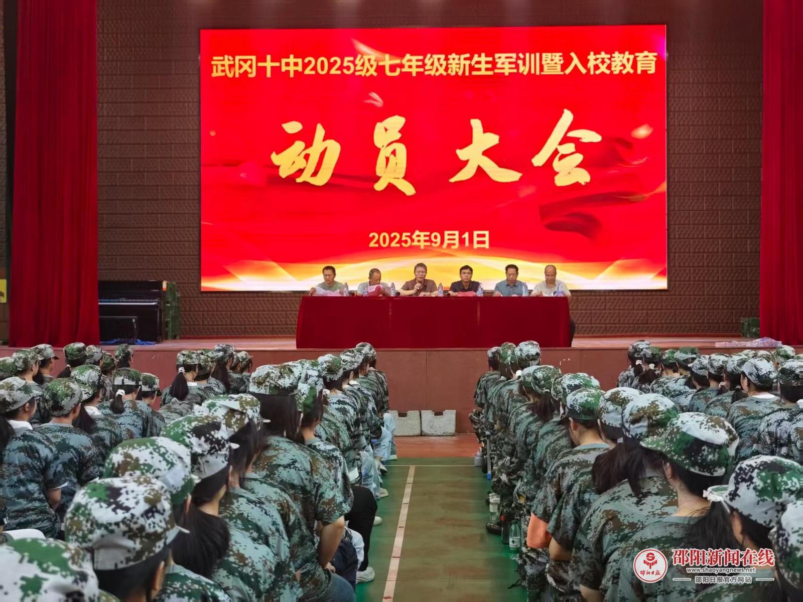 邵阳日报·邵阳新闻在线讯(通讯员 徐利锋 段媛 潘佳琳)9月1日上午,武冈十中在大礼堂召开2025年秋季七年级新生军训暨入校教育动员大会。学校党政团领导、七年级全体师生和相关工作人员参加会议。