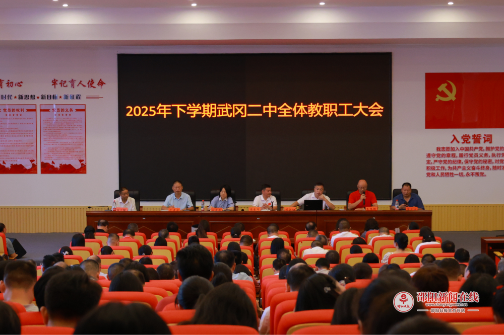 邵阳日报·邵阳新闻在线讯(通讯员 周香英 黄芷琳 吕剑昱)8月30日上午,武冈市第二中学召开了2025年秋季学期第一次全体教职工会议。会议聚焦提升教育教学质量、强化校园安全管理、深化教学研究等核心议题,为新学期工作谋篇布局。