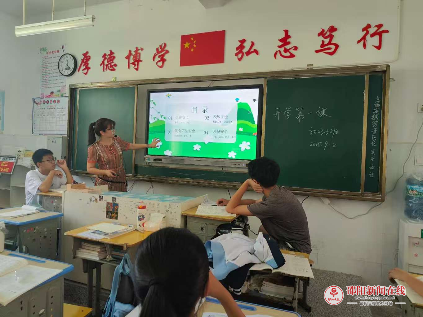 邵阳日报·邵阳新闻在线讯(通讯员 段太雄 严磊)9月2日,新宁县焦家垅中学各班级精心组织开展了以爱国主义教育和安全教育为主题的“开学第一课”活动。