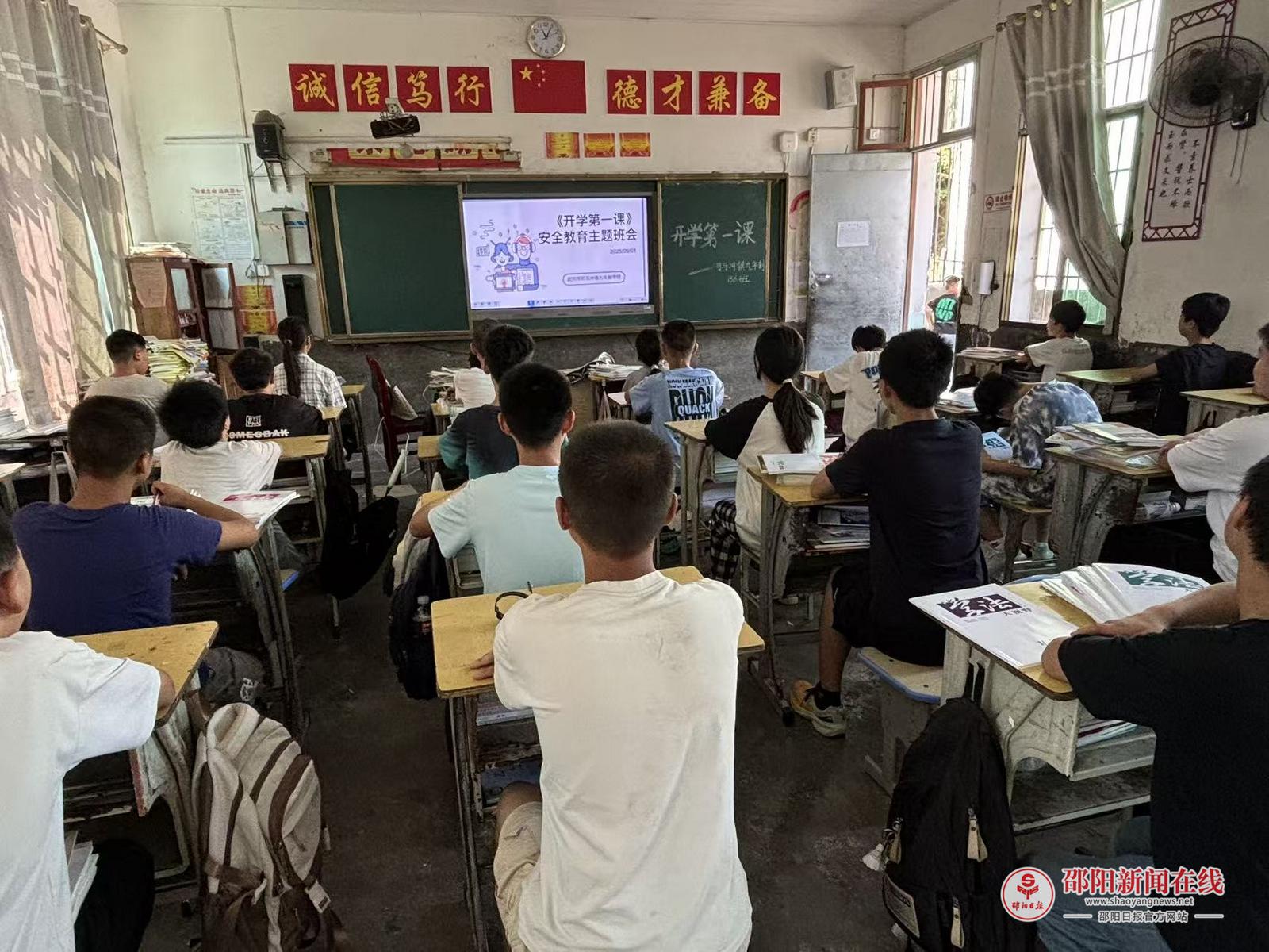 邵阳日报·邵阳新闻在线讯(通讯员 银海伟 李小凤)9月1日,新学期开学第一天,武冈市司马冲镇九年制学校精心组织开展“开学第一课”安全教育活动。全校各班班主任化身安全宣讲员,为学生们送上了一堂扎实、生动的“安全必修课”。