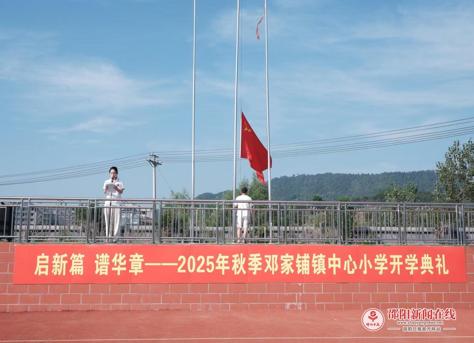 邵阳日报·邵阳新闻在线讯(通讯员 郭婷 邹岚)9月3日上午,武冈市邓家铺镇中心小学全体师生齐聚校园举行2025年秋季开学典礼,以“金秋筑梦启新篇,童心向党谱华章”为主题,开启新学期的崭新篇章。