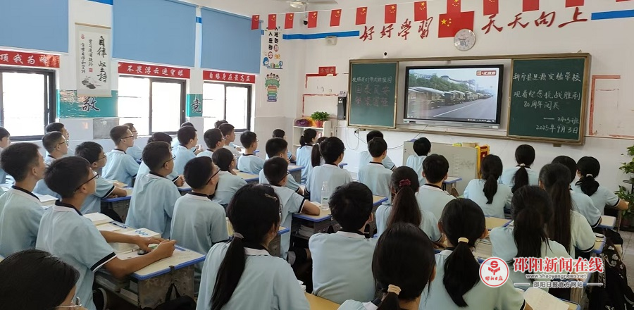 邵阳日报·邵阳新闻在线讯(通讯员 蒋剑云)9月3日上午,新宁县思源实验学校组织全体师生观看纪念中国人民抗日战争暨世界反法西斯战争胜利80周年大会直播,并以此为契机开展了一场意义深远的爱国主义思政课。