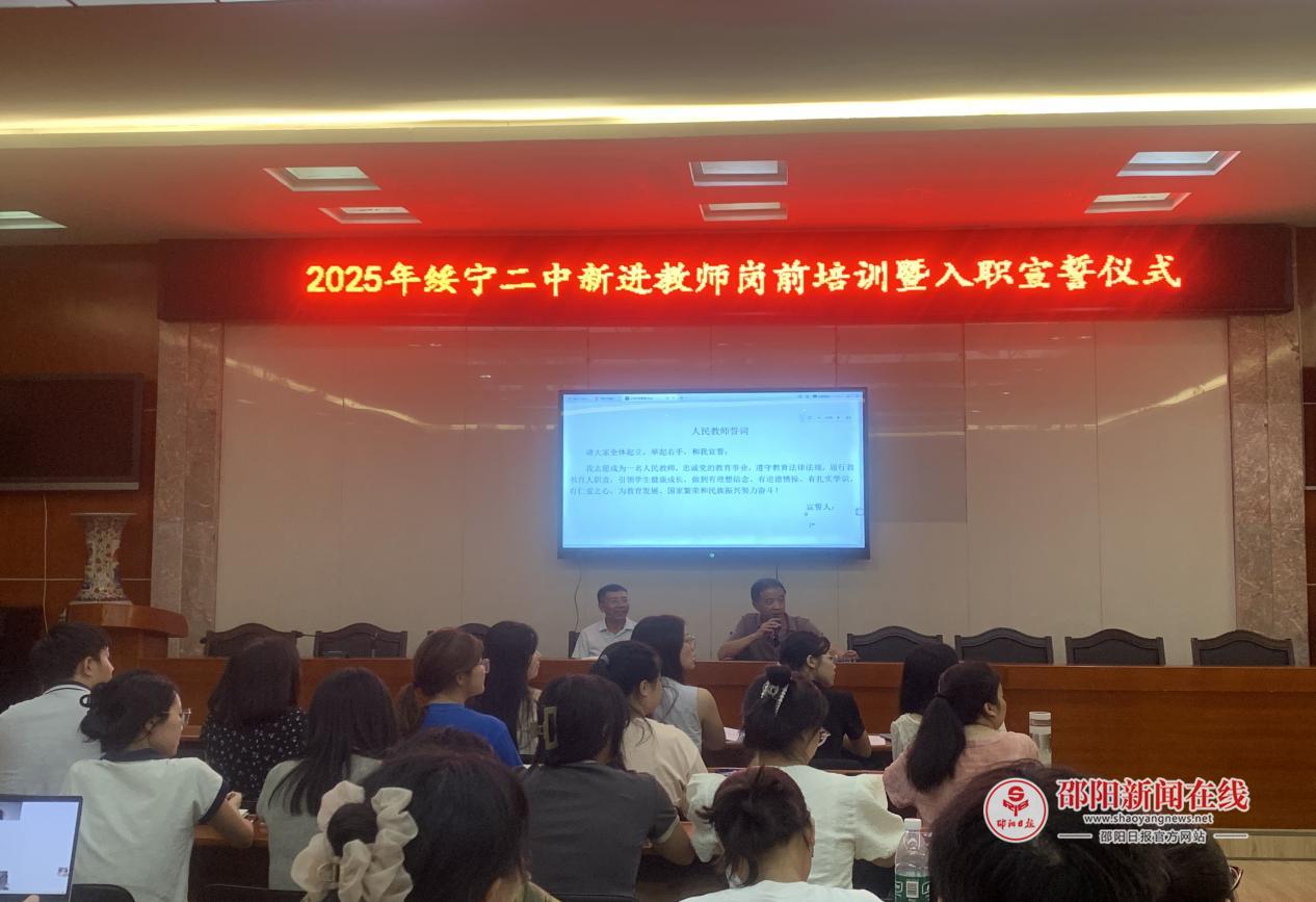 邵阳日报·邵阳新闻在线讯(通讯员 杨光义 向华明)9月2日,绥宁县第二中学精心组织了新进教师岗前培训暨入职宣誓仪式,全体新进教师及学校相关领导参与活动。
