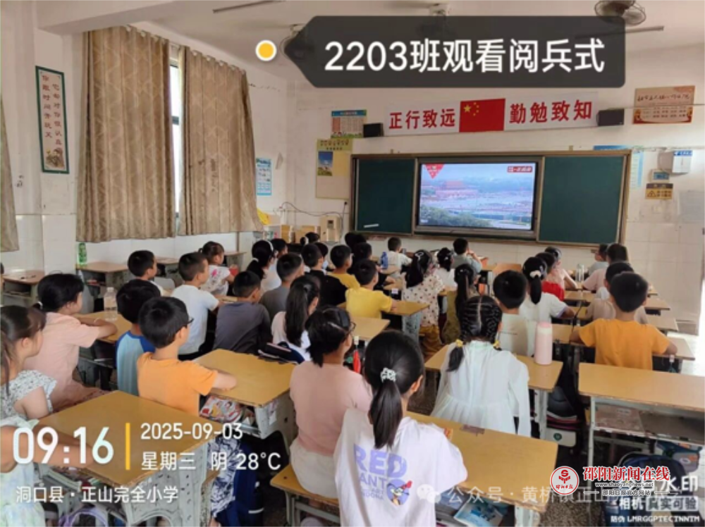 邵阳日报·邵阳新闻在线讯(通讯员 张逸 李旭佳 金紫怡)9月3日,是纪念中国人民抗日战争暨世界反法西斯战争胜利80周年的重要日子。这一天,洞口县黄桥镇正山小学全体师生怀着崇敬与激动的心情,在各自教室与会议室,共同观看了九三阅兵。