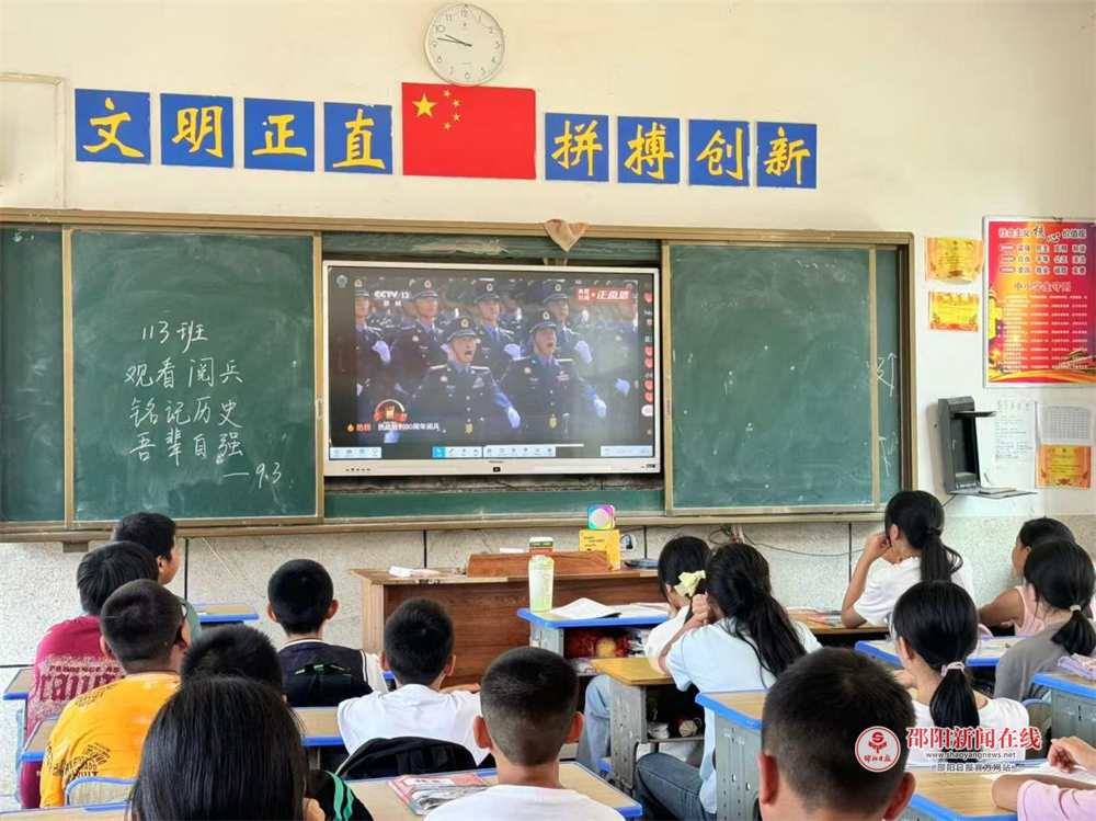邵阳日报·邵阳新闻在线讯(通讯员 刘弘珂 成云超 付芬芬)9月3日,武冈市迎春亭街道头堂九年制学校组织全体师生观看了纪念中国人民抗日战争暨世界反法西斯战争胜利80周年阅兵活动直播。