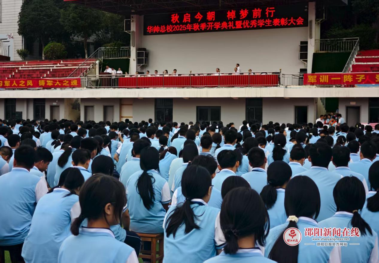 邵阳日报·邵阳新闻在线讯(通讯员 谢正旺 胡益娟 刘真 梁帆)9月4日,湖南华帅总校(湖南华帅管理有限责任公司)以足球场为舞台,举行以“秋启今朝、棹梦而行”秋季开学典礼。近5000名师生及家长齐聚一堂,华帅总校校长、华帅总校首席顾问赵国安、党支部书记赵培等校领导悉数出席,共同见证这一教育盛事。典礼在庄严的国歌声中拉开帷幕,校领导高度肯定了过去一学年取得的优异成绩,包括高考本科上线率、学科竞赛获奖、艺术体育赛事突破等,并勉励全体师生以“校荣我荣”的责任感,投身新学期的学习与工作。