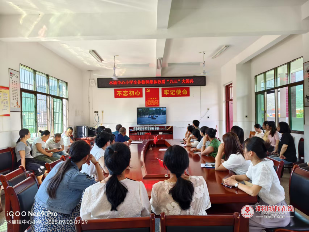 邵阳日报·邵阳新闻在线讯(通讯员 刘佳宁)为铭记历史、缅怀先烈、珍爱和平、开创未来,深刻感受国家富强、民族振兴的宏伟气象,激发全体师生的爱国热情和民族自豪感,9月3日上午,新宁县水庙镇中心小学以班级为单位,组织全校师生集中收看了纪念中国人民抗日战争暨世界反法西斯战争胜利80周年阅兵活动直播。