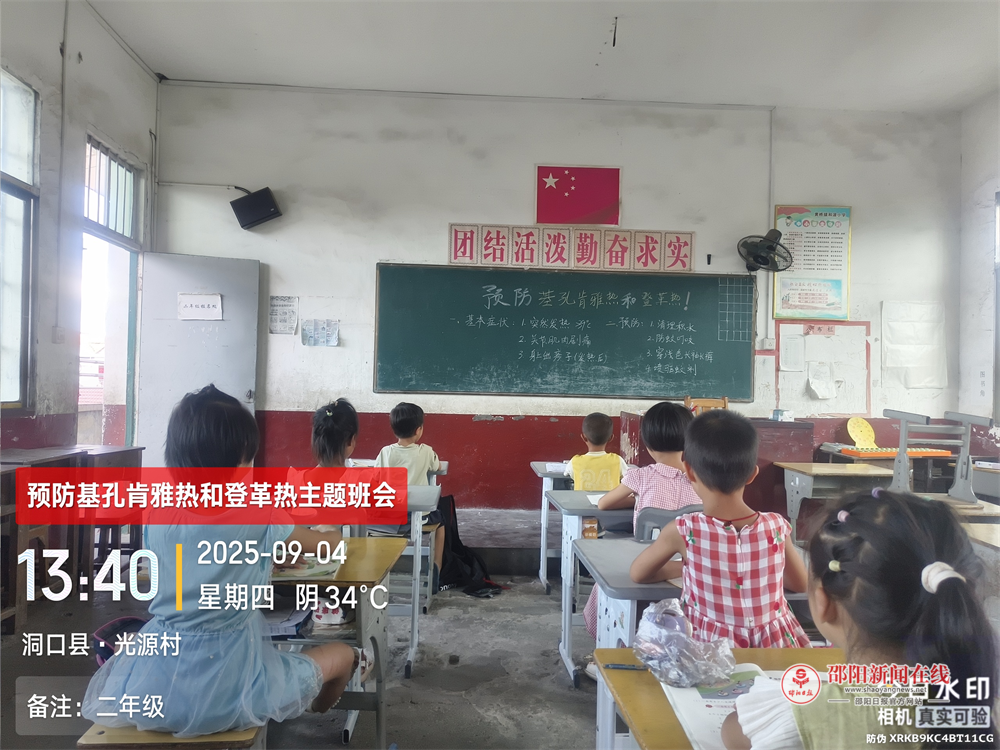 邵阳日报·邵阳新闻在线讯(通讯员 龙薛)当前正值蚊虫活跃季节,更是基孔肯雅热和登革热(简称“两热”)等蚊媒传染病的高发期。为保障全体师生的健康,共同营造一个安全卫生的校园环境,9月4日上午,洞口县黄桥镇和源完全小学开展了“预防两热主题班会”并再次对校园进行了全面彻底的卫生清洁。