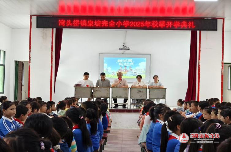 邵阳日报·邵阳新闻在线讯(通讯员 黄春霞)9月4日上午,武冈市湾头桥镇泉塘完全小学全体师生齐聚会堂,举行2025年秋季开学典礼。本次典礼以“启航新学期,逐梦新征程”为主题,激励全体同学在新学年里奋发向上、积极进取。