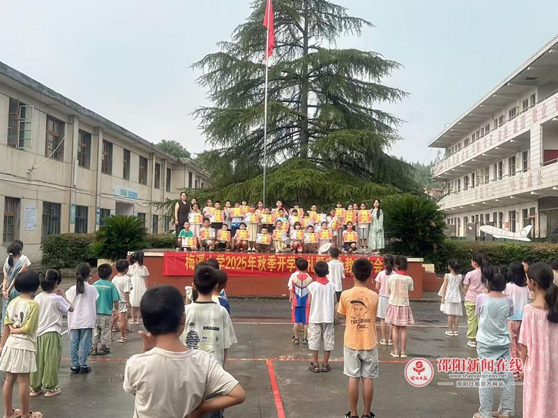 邵阳日报·邵阳新闻在线讯(通讯员 林尾妹 周黎 宁韵玲)9月8日上午,隆回县北山镇梅溪小学全校师生齐聚大操场举行2025年秋季开学典礼暨法治教育讲座。伴随着雄壮的国歌声,五星红旗冉冉升起,全体师生肃立注目,开学典礼正式拉开帷幕。
