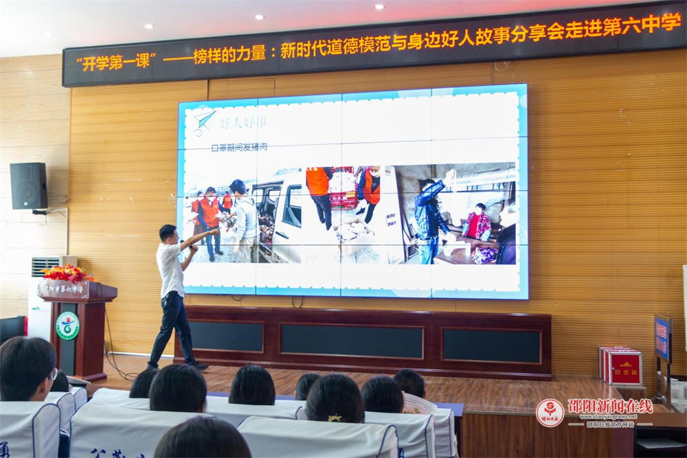 邵阳日报·邵阳新闻在线讯(通讯员 唐熹微 陈小宁 朱珮仪)为进一步弘扬传统美德,传承好人精神,引导广大青少年“扣好人生第一粒扣子”,近日,邵阳市第六中学举行了新时代邵阳道德模范与身边好人故事分享会。本次活动通过身边好人与道德模范的现场宣讲、互动交流、电视台展播等多种形式,为师生带来一场涤荡心灵、激励奋进的精神盛宴。