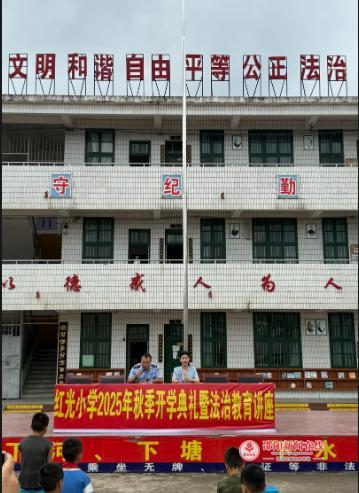 邵阳日报·邵阳新闻在线讯(通讯员 丁丽 李小岚 邓凤平)9月9日,隆回县三阁司镇红光小学举行2023年秋季开学典礼暨法治教育讲座,全校师生以崭新面貌迎接新学期。