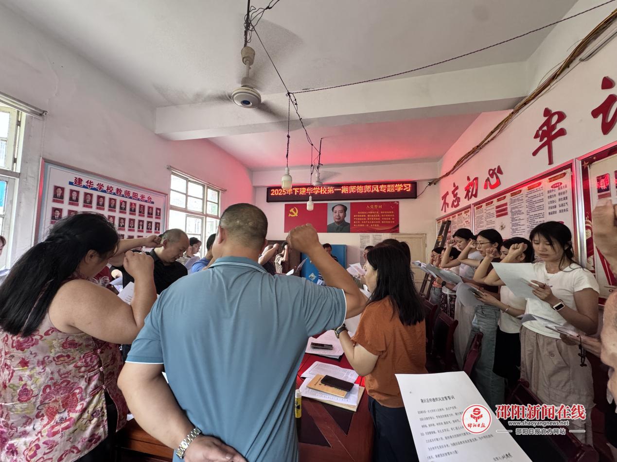 邵阳日报·邵阳新闻在线讯( 通讯员 林宛儒 黄沁如)9月8日中午,隆回县七江镇建华九年义务制学校组织全体教师开展师德师风专题学习活动,全体教师参与并庄严宣誓。