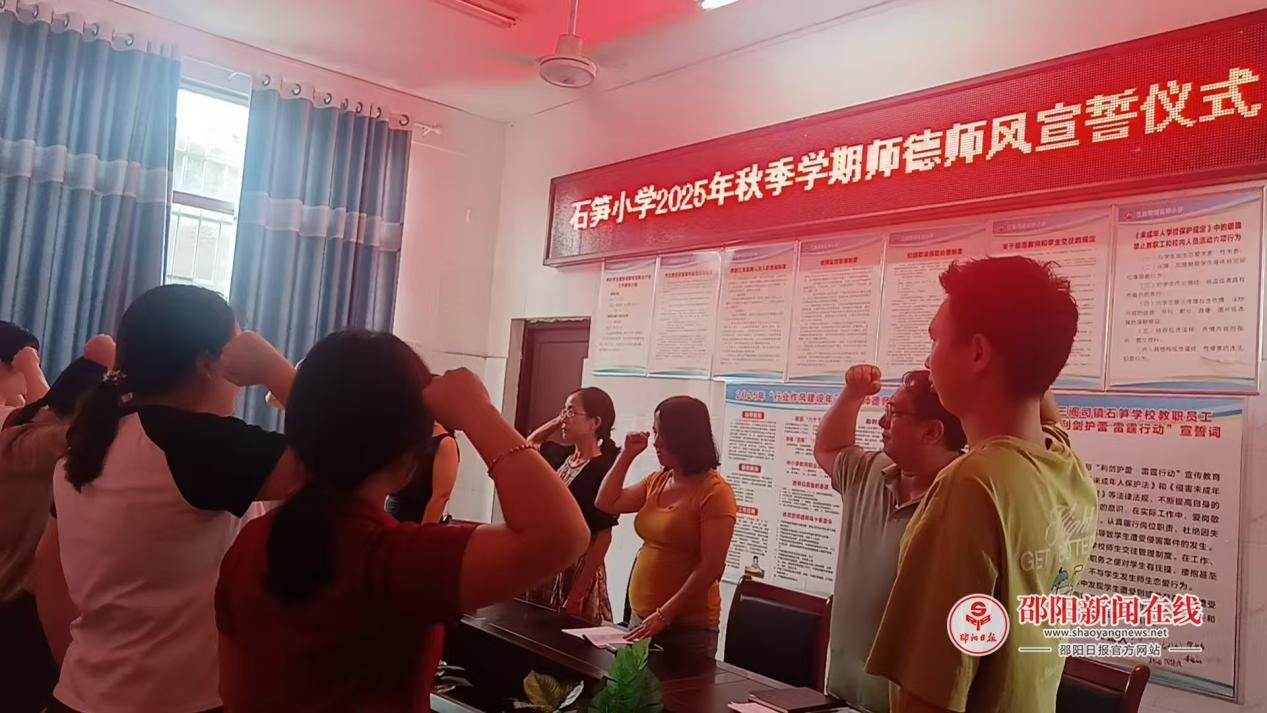 邵阳日报·邵阳新闻在线讯(通讯员 李得恩 钱娇)9月9日下午,隆回县三阁司镇石笋小学组织全体教师开展师德师风专题学习活动,并举行宣誓仪式。