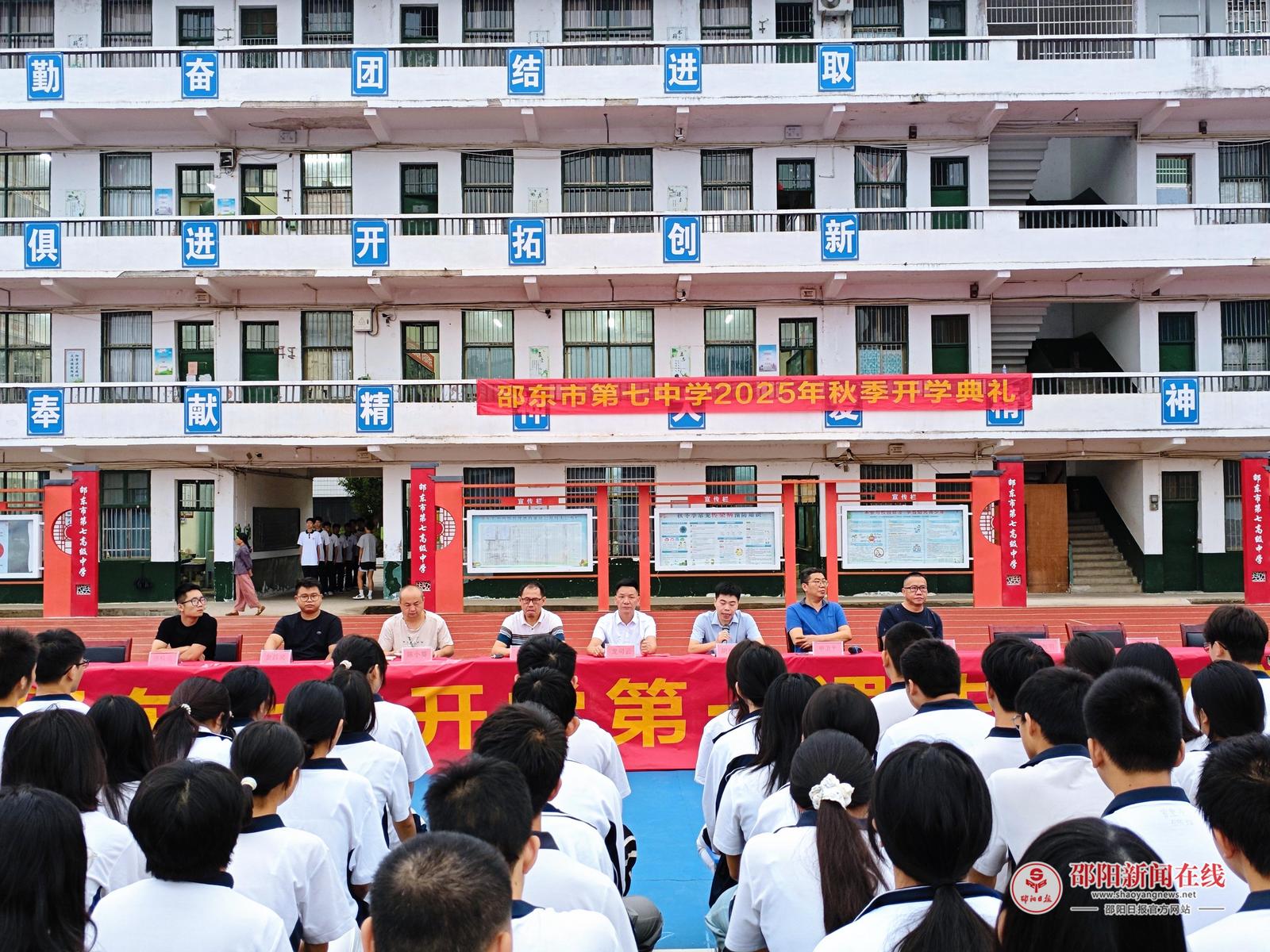邵阳日报·邵阳新闻在线讯(通讯员 金昌灵 张熙贤)9月9日清晨 ,邵东七中 2025 年秋季开学典礼在升旗仪式中拉开帷幕,全体师生参与,典礼由政教副校长申卫平主持。