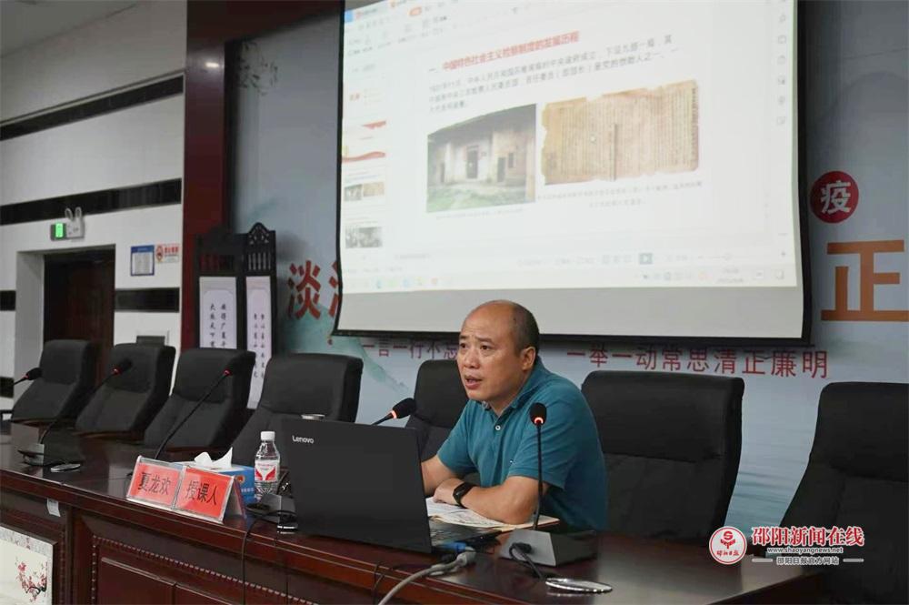 邵阳日报·邵阳新闻在线讯(通讯员 段锦雯 罗杰)为深入贯彻落实新时代检察队伍建设要求,强化检察文化建设,邵阳县检察院正式启动新一轮“夫夷检谈”学习活动。9月8日下午,该院党组书记、检察长夏龙欢以“怎么做一名新时代合格的检察官”为题,走上讲台为全院干警讲授学习型检察机关建设“第一课”。