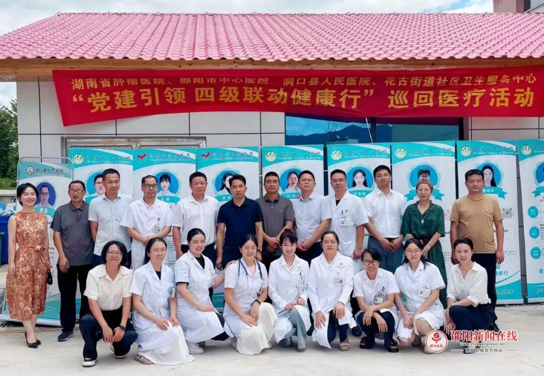 9月12日上午,湖南省肿瘤医院、邵阳市中心医院、洞口县人民医院和花古街道社区卫生服务中心四级医疗机构紧密联动,共同启动“党建引领 四级联动健康行”巡回医疗活动,将优质医疗资源精准下沉至基层一线。