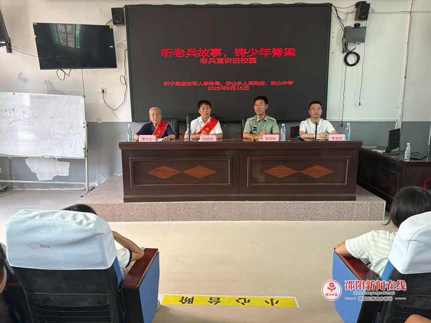 邵阳日报·邵阳新闻在线讯(通讯员 漆宇 李崇伟)为传承红色基因,厚植家国情怀,9月15日,新宁县安山乡4名退役老兵走进安山中学给学生们带来了一堂别开生面、振奋人心的国防教育课。活动以“听老兵故事铸少年脊梁”为主题,旨在通过老兵的亲身讲述,激励青少年坚定理想信念,汲取奋进力量。