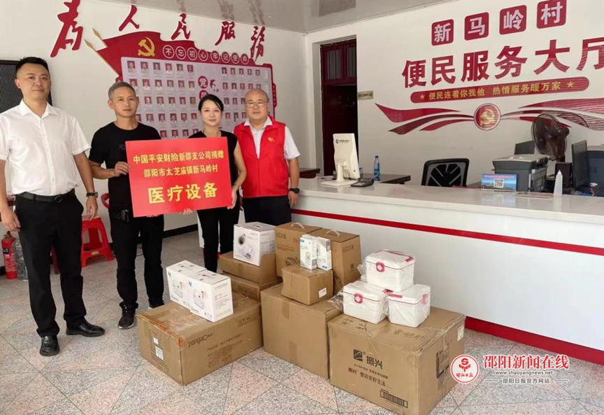 活动现场,平安财险新邵支公司向新马岭村捐赠了筒式电子血压计、特定电磁波谱治疗器、多参数生命体征监测仪及村民服务小药箱等系列急需物资,进一步提升了基层医疗卫生服务能力,可有效满足村民日常健康监测与疾病预防需求。