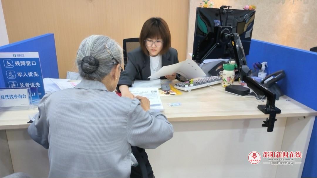 工作人员指引湖南娄底张奶奶通过线上办理业务