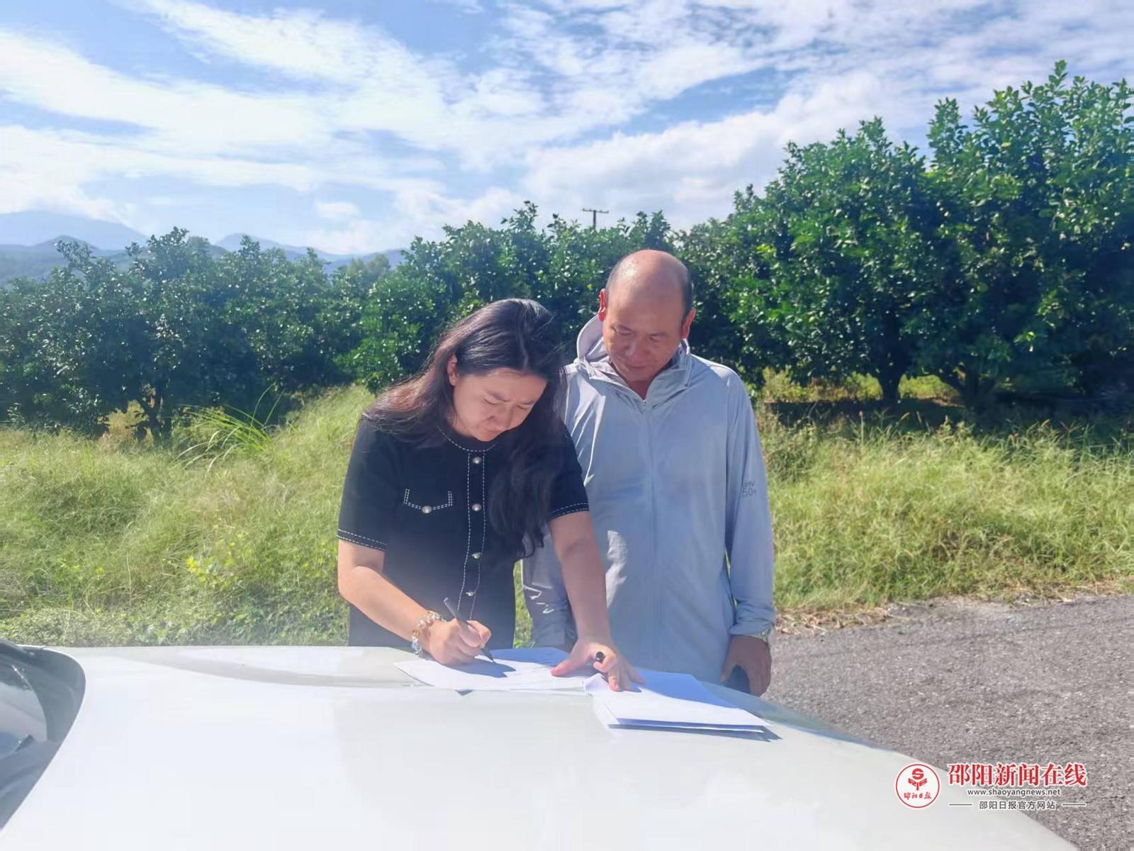 邵阳日报·邵阳新闻在线讯(通讯员 罗小强)9月17日,新宁县农信担服务有限公司(简称“新宁农信担”)的客户经理顶着烈日,上门为黄龙镇新田村脐橙种植大户徐平安进行现场尽调。徐平安种植了606亩脐橙,正为资金发愁,而新宁农信担的到来,为他解了燃眉之急。