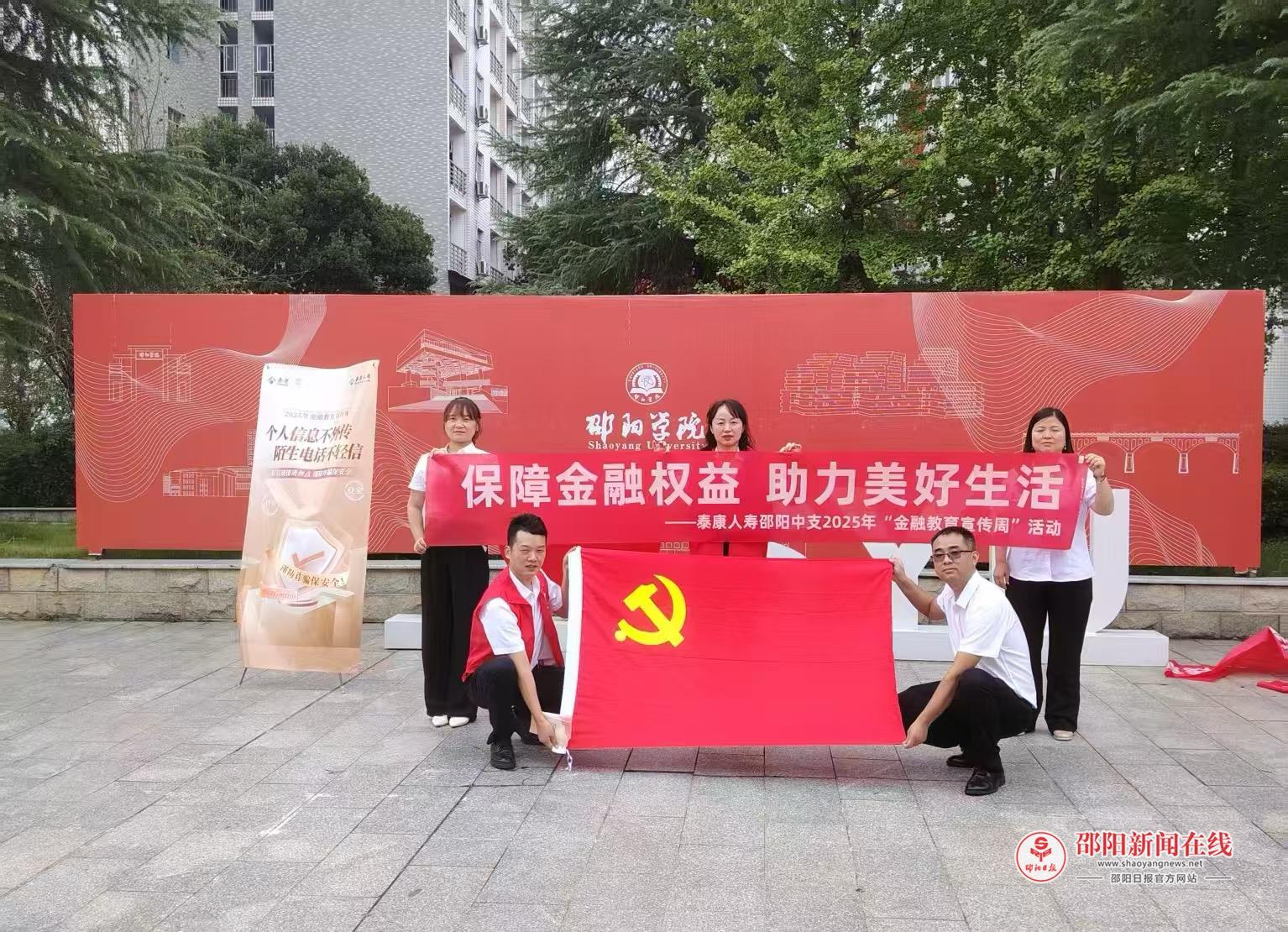 邵阳日报·邵阳新闻在线讯(通讯员 李馨谊)9月18日上午,泰康人寿邵阳中支党员及员工在邵阳学院开展以“保障金融权益,助力美好生活”为主题的金融教育宣传周活动。各县支机构也同步行动,在当地各公共场所积极开展金融教育宣传。