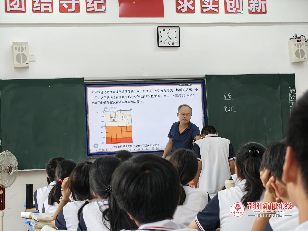 随后,盛方圆老师执教湘教版高中地理选择性必修一《外力作用与地表形态——流水作用与地表形态:水蚀作用》一课。课堂上,她整合多媒体资源与地理案例,通过引导学生分析地图、探究典型地貌成因。杨亿明老师以《热力环流的应用——山谷风》为授课主题,紧密结合近年高考命题趋势,聚焦高频考点展开精准教学。何立华老师的高一地理必修一《地球的圈层结构》课堂,则展现出扎实的教学功底与鲜明的个人风格。