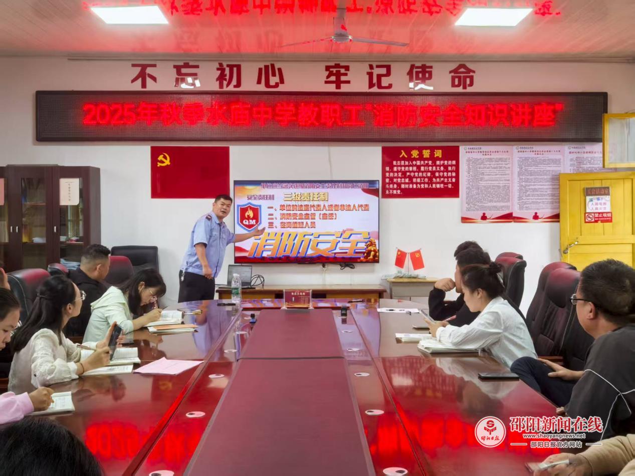 邵阳日报·邵阳新闻在线讯(通讯员 邓楠)9月22日,新宁县水庙中学举办教职工“消防安全知识讲座”。