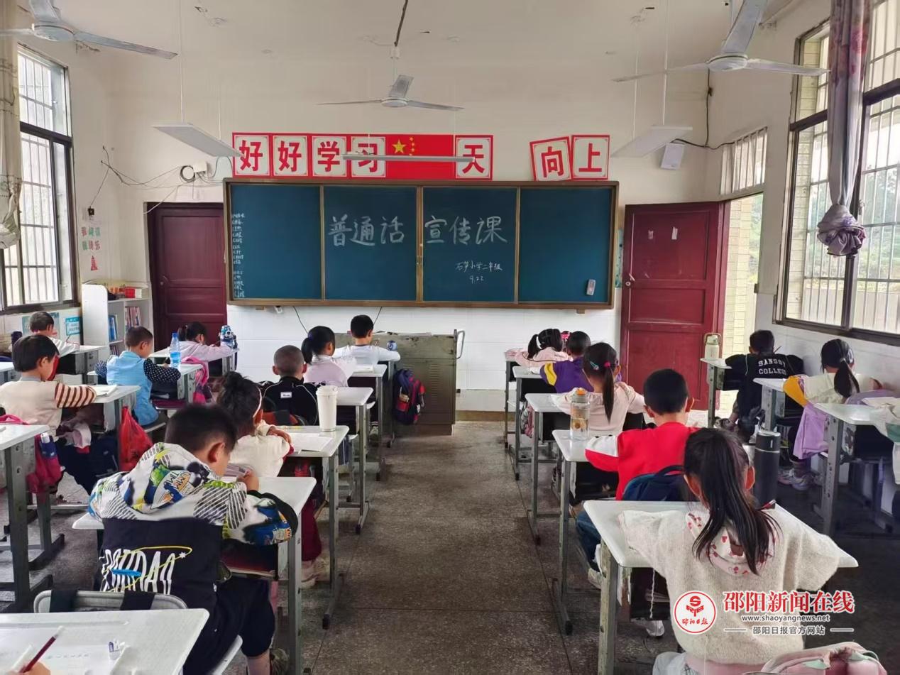 邵阳日报·邵阳新闻在线讯(通讯员 李得恩 王立志 刘世纯) 近日,隆回县三阁司镇石笋小学开展了以“推广普通话,奋斗新征程”为主题的班会活动,旨在通过多种宣传方式,让普通话成为校园内最美的语言,成为连接师生、沟通心灵的桥梁。