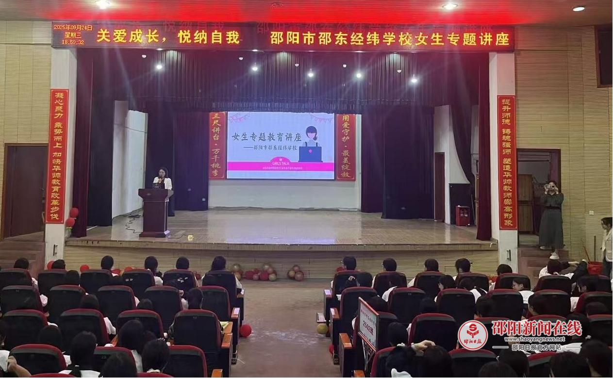 邵阳日报·邵阳新闻在线讯(通讯员 胡晓碧)9月24日晚,邵东经纬学校在学术报告厅举办“关爱成长,悦纳自我——做自信阳光的高中女生”专题会议。高一全体女生参会,会议由校团委书记胡晓碧主持。