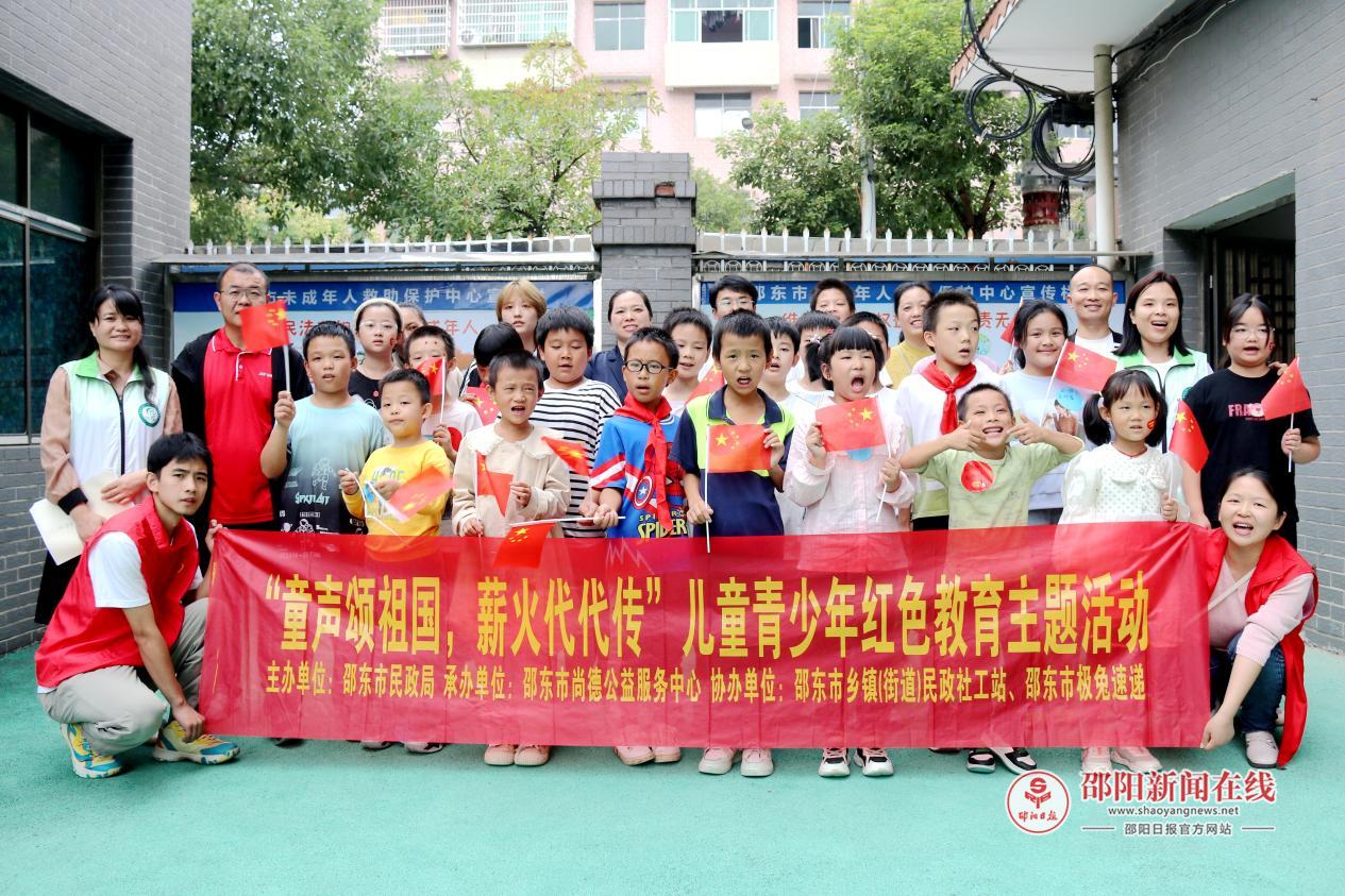 邵阳日报·邵阳新闻在线讯(通讯员 姚婷)9月27日,由邵东市民政局主办、邵东市尚德公益服务中心承办,邵东市乡镇(街道)民政社工站、邵东市极兔速递协办的“童声颂祖国,薪火代代传”儿童青少年红色教育主题活动,在邵东市未成年人救助保护中心落幕。10名未保中心困难家庭儿童青少年与10名小志愿者结对,在20名后勤保障志愿者及工作人员见证下,开启红色之旅,播撒爱国种子。