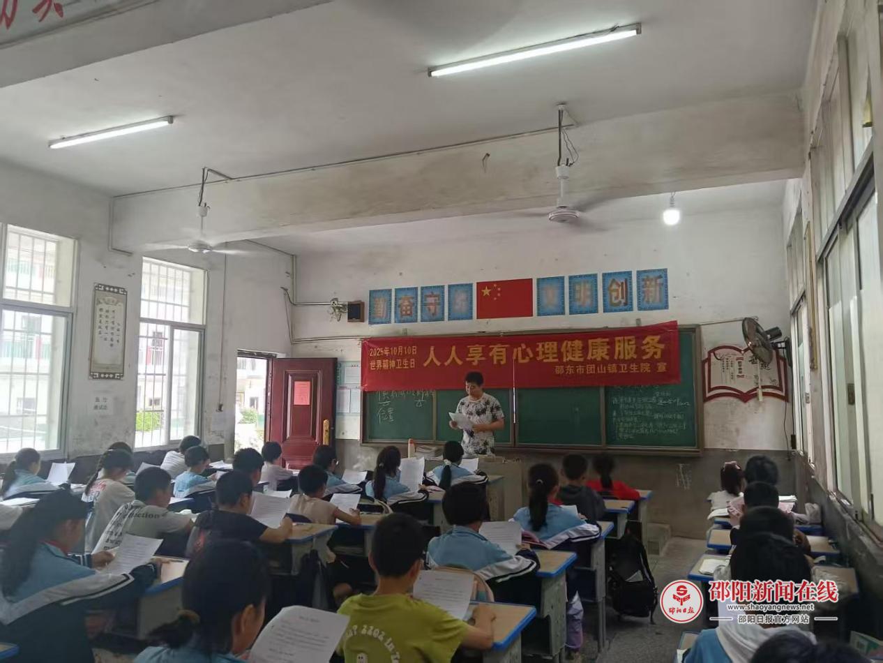 邵阳日报·邵阳新闻在线讯(通讯员 安准)9月28日上午,邵东市团山镇中心小学四年级教室传来阵阵欢声笑语,一场别开生面的“阳光心灵,健康同行”心理健康专题讲座正在举行。团山镇卫生院医务人员化身“心灵导师”,将医学专业与儿童教育深度融合,为120余名师生带来耳目一新的心理健康课。