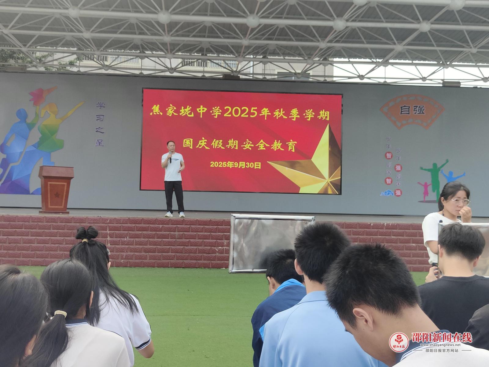 邵阳日报·邵阳新闻在线讯(通讯员 段太雄)近日,新宁县焦家垅中学组织全校学生集中观看了国庆假期安全教育视频,并开展了一系列形式多样的安全教育活动。