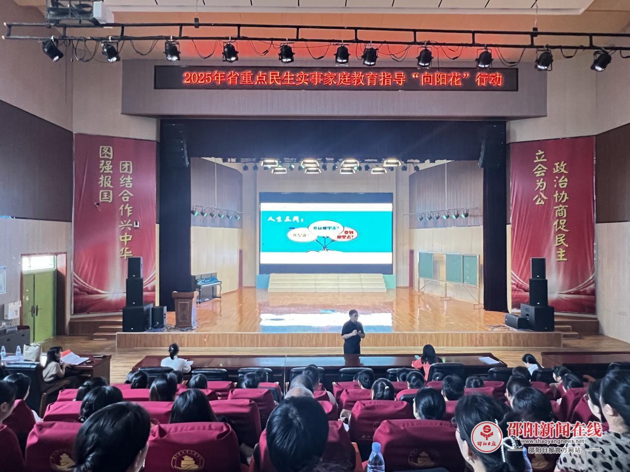 活动伊始,邵阳市家庭教育研究会特聘高级讲师谢友元带来专题讲座《好父母——引领孩子幸福人生》。谢友元以新闻为切入点,通过互动问答、真实案例剖析等形式,从孩子的幸福人生、社会在卷路在何方、优秀父母幸福儿女等三个模块深入浅出地讲解了“以德报怨”“给孩子一个书香人家”等实用教育方法。