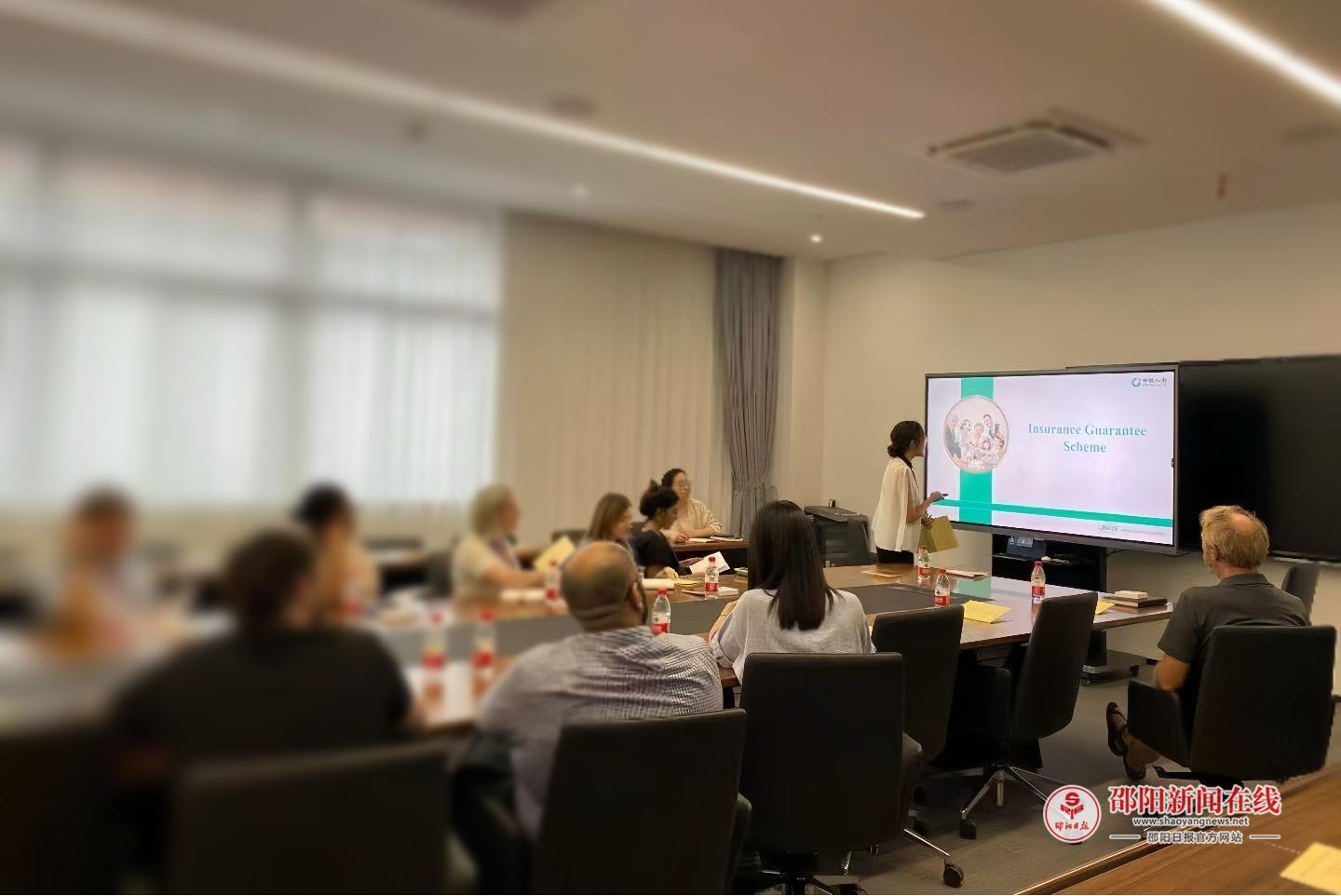 图:工作人员为宁波某学校外籍教师讲解保险保障方案