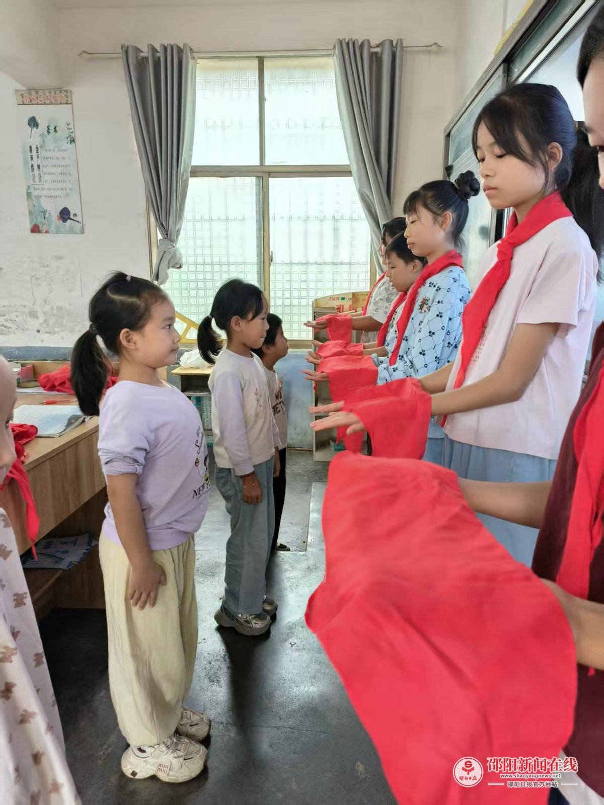 在熟悉而昂扬的队歌声中,仪式拉开帷幕。新队员认真学习了少先队的基本知识,加深了对组织的理解与向往。随后,高年级的优秀少先队员代表们迈着整齐的步伐,郑重地为新队员佩戴上鲜艳的红领巾。这一刻,新队员们脸上洋溢着自豪与光荣的笑容。