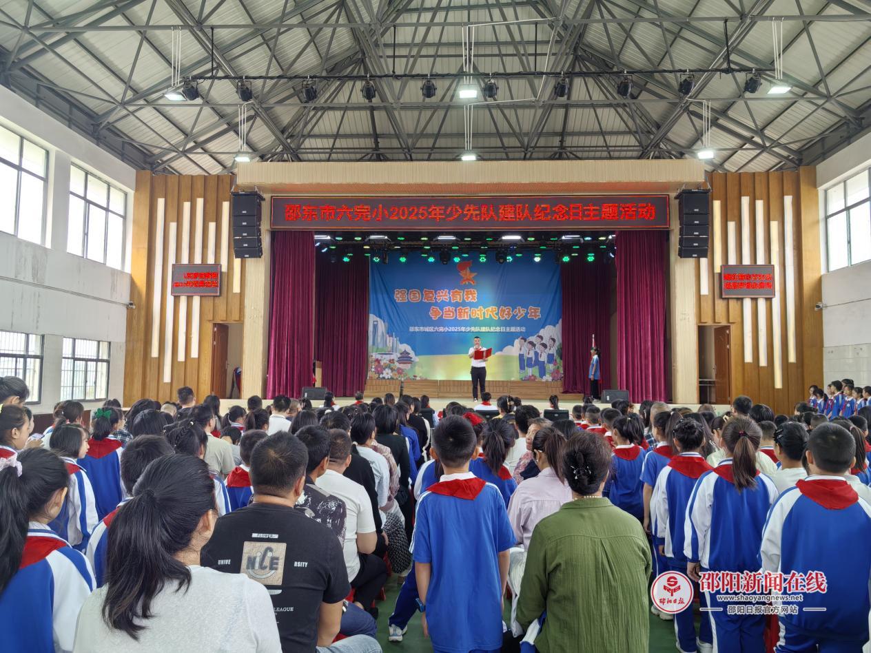 邵阳日报·邵阳新闻在线讯(通讯员 黄冬梅 张瑜)10 月 13 日,邵东市城区第六完全小学在学校礼堂举行 “强国复兴有我,争做新时代好少年” 新队员入队仪式,队旗飘扬、誓言铿锵,为少先队注入新活力。