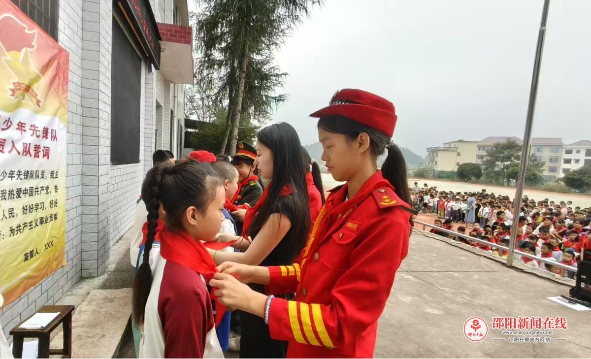 邵阳日报·邵阳新闻在线讯(通讯员 雷丽金 舒昕格 姚乐秀)10月13日,武冈市荆竹铺镇中心小学举行庄严的少先队入队仪式,80余名新同学光荣加入中国少年先锋队。