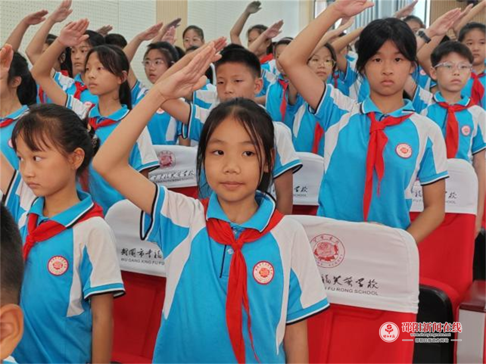 邵阳日报·邵阳新闻在线讯(通讯员 郑家欣 杨华)10月13日,为充分展现新时代少先队员朝气蓬勃、奋发向上的精神风貌,激励少先队员传承红色基因、树立远大理想,武冈市幸福芙蓉学校以“强国复兴有我,争当新时代好少年”为主题,举行了新队员入队仪式。该校行政领导、一年级师生及学校大队委成员共同见证了这一庄严时刻。