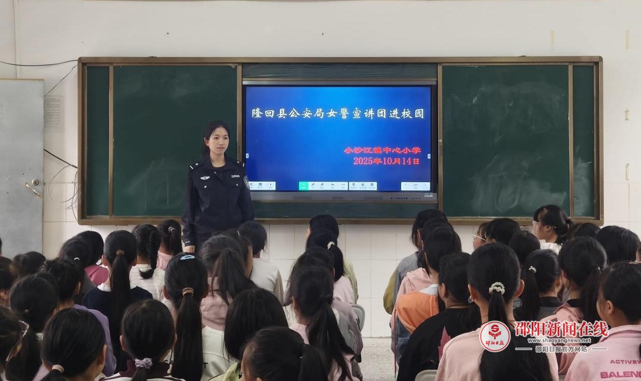 邵阳日报・邵阳新闻在线讯(通讯员 李杰)10月14日,隆回县公安局女警宣讲团走进小沙江镇中心小学,为全体学生开展 “安全防护教育课”。女警杨洁以案例讲解、情景模拟、互动问答形式,围绕预防性侵害、拒绝校园欺凌、禁毒反诈等主题,传授自我保护知识。