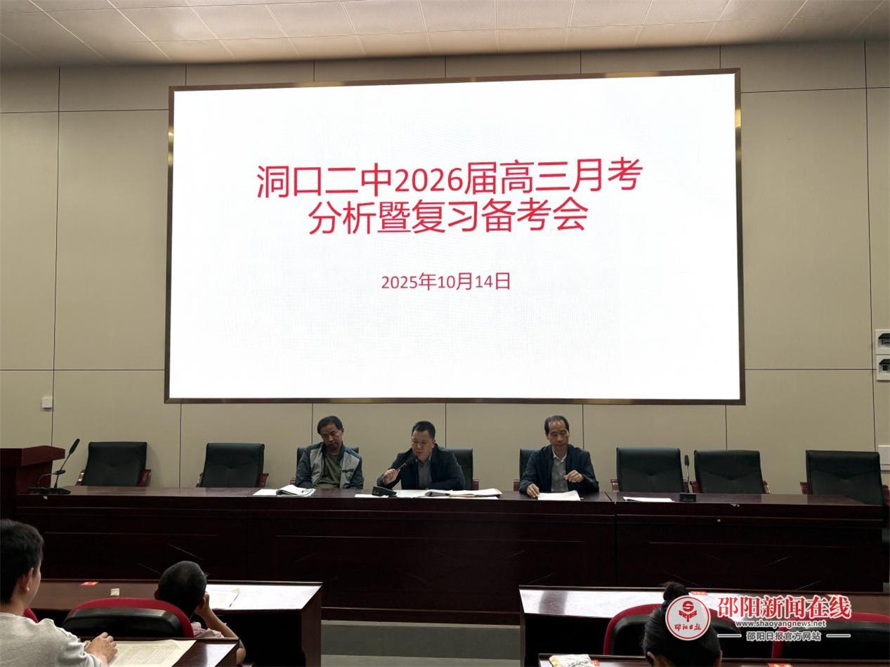 邵阳日报·邵阳新闻在线讯(通讯员 刘登贤 李爱 聂聆)为科学分析备考形势、凝聚全员奋进力量,10月14日晚,洞口县第二中学召开2026届高三第一次月考分析暨备考动员大会,全体高三教职工齐聚一堂,共同为明年高考凝心聚力。