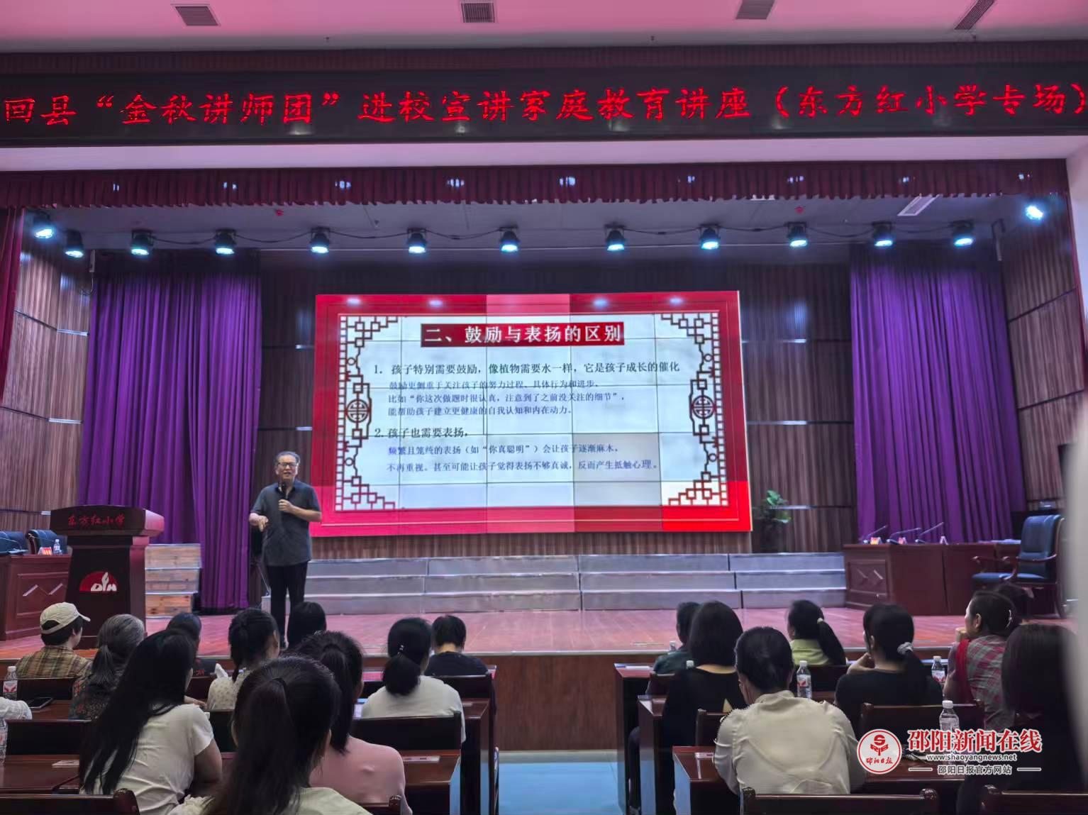 邵阳日报·邵阳新闻在线讯(通讯员 黄业柳 刘雅婷 廖文胜)10月16日下午,隆回县东方红小学邀请县关工委 “金秋讲师团” 成员龙会帮老师,在多功能报告厅开展以 “爱・规并举” 为主题的家庭教育专题讲座。一年级130余位家长代表到场参与,共同探寻家庭教育的智慧与方法。