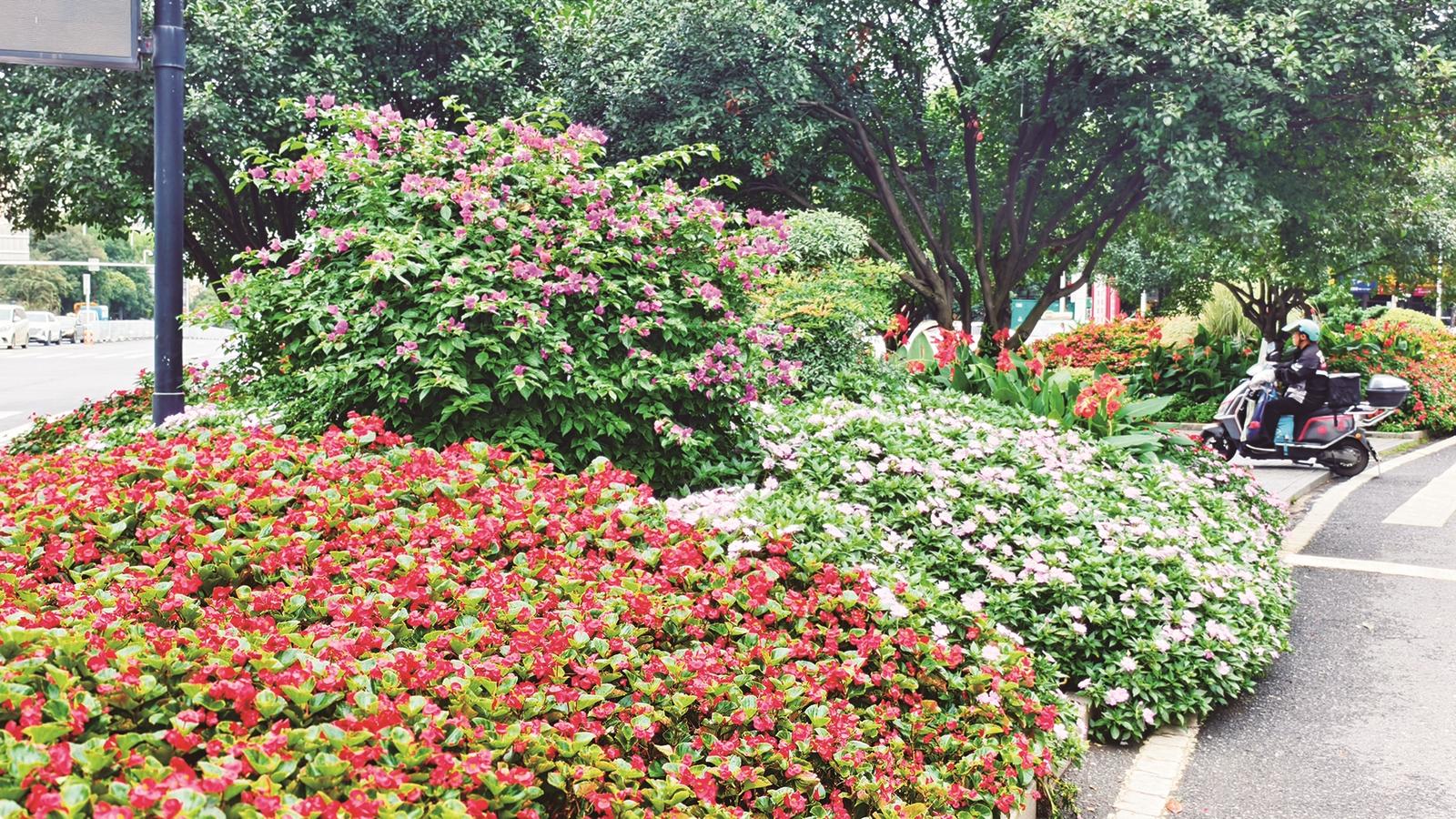 双拥路—敏州路交通岛栽种的花卉错落有致,争奇斗艳。 申兴刚 摄