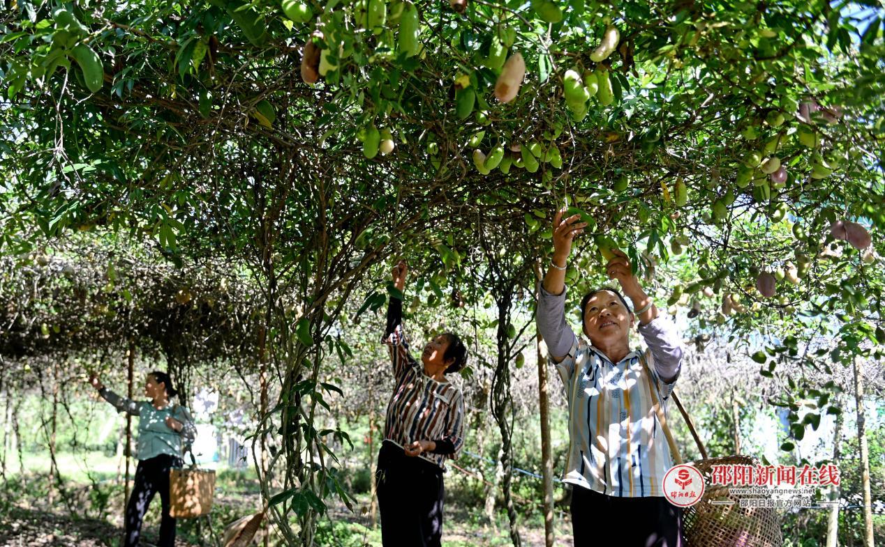 邵阳日报·邵阳新闻在线讯(通讯员 周一阁)寒露至,秋意浓,正是丰收好时节。当下,二十四节气中的 “寒露” 刚过,在洞口县毓兰镇亿丰农林产业园的基地里,却是一派热火朝天的繁忙景象。村民们正穿梭于藤架之间,手脚麻利地采摘着一个个成熟饱满的八月瓜,脸上洋溢着收获的喜悦。