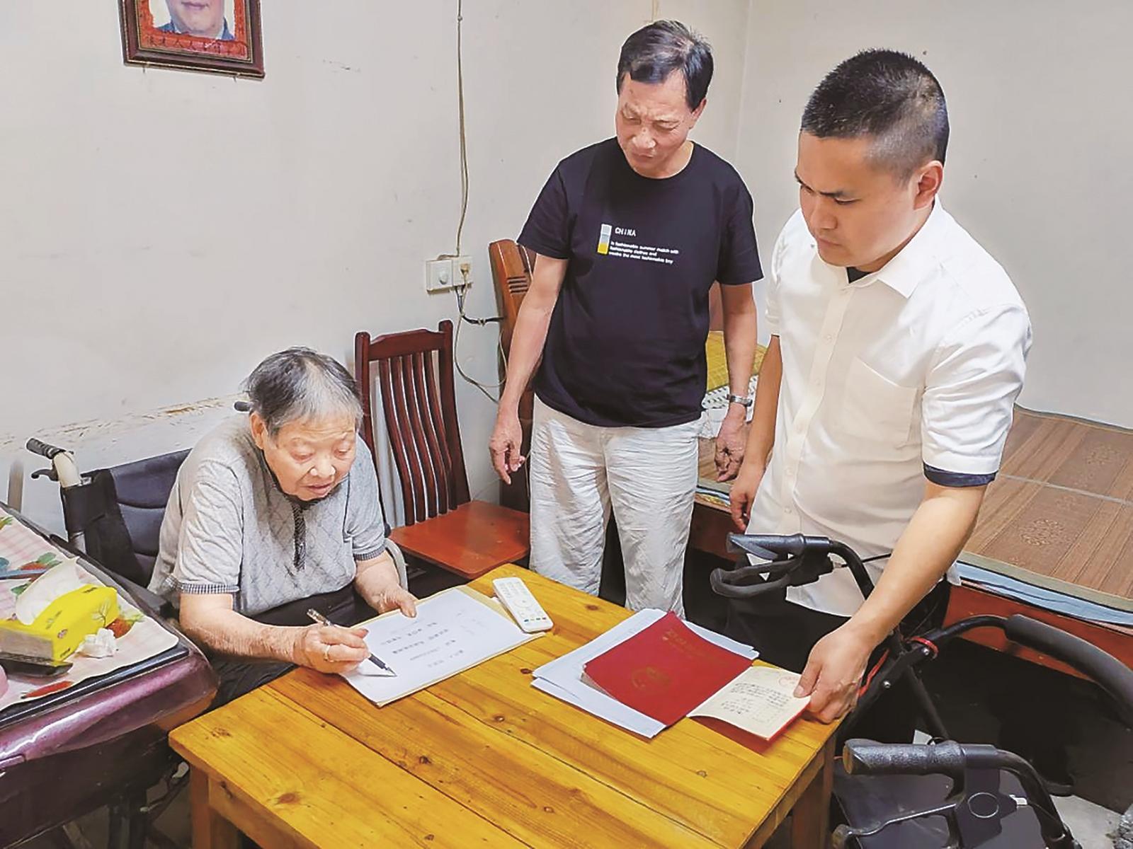 ◀市不动产登记中心工作人员上门为群众办理业务。